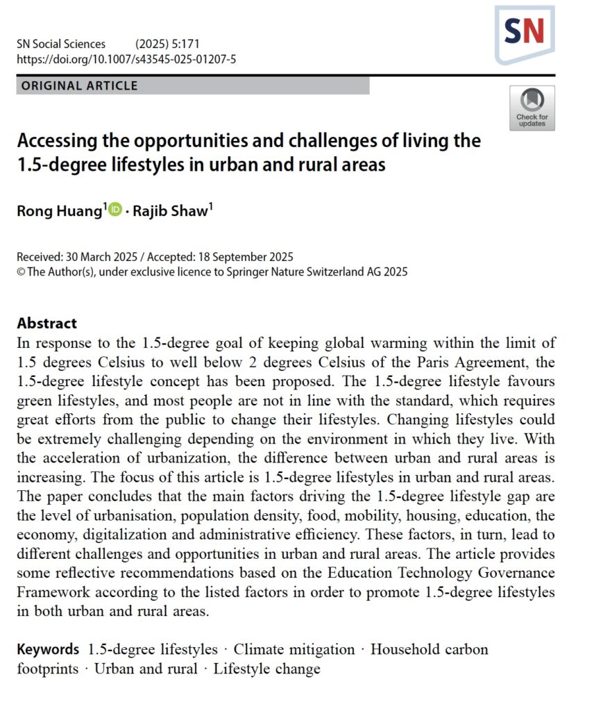 New paper: “Accessing the opportunities and challenges of living the 1.5-degree lifestyles in urban and rural areas”