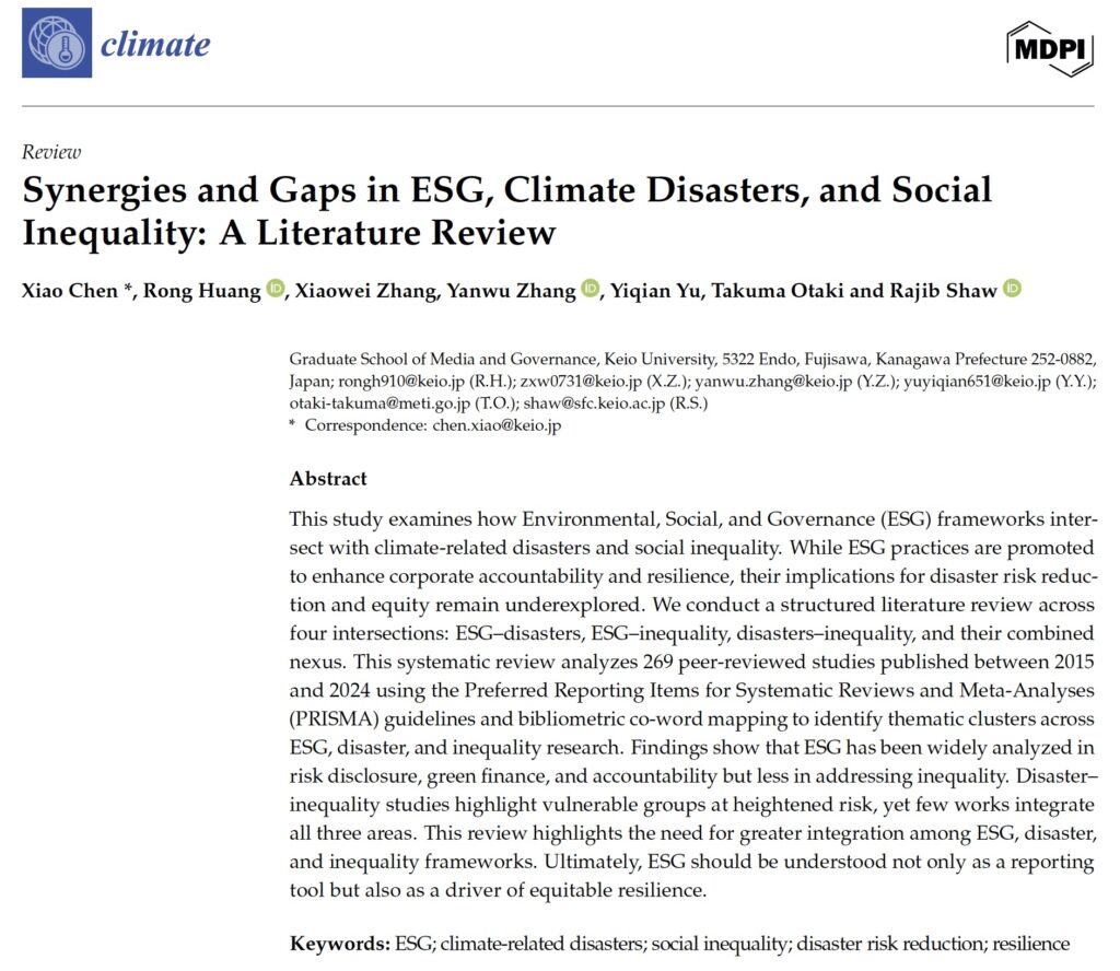New paper: “Synergies and Gaps in ESG, Climate Disasters, and Social Inequality: A Literature Review”