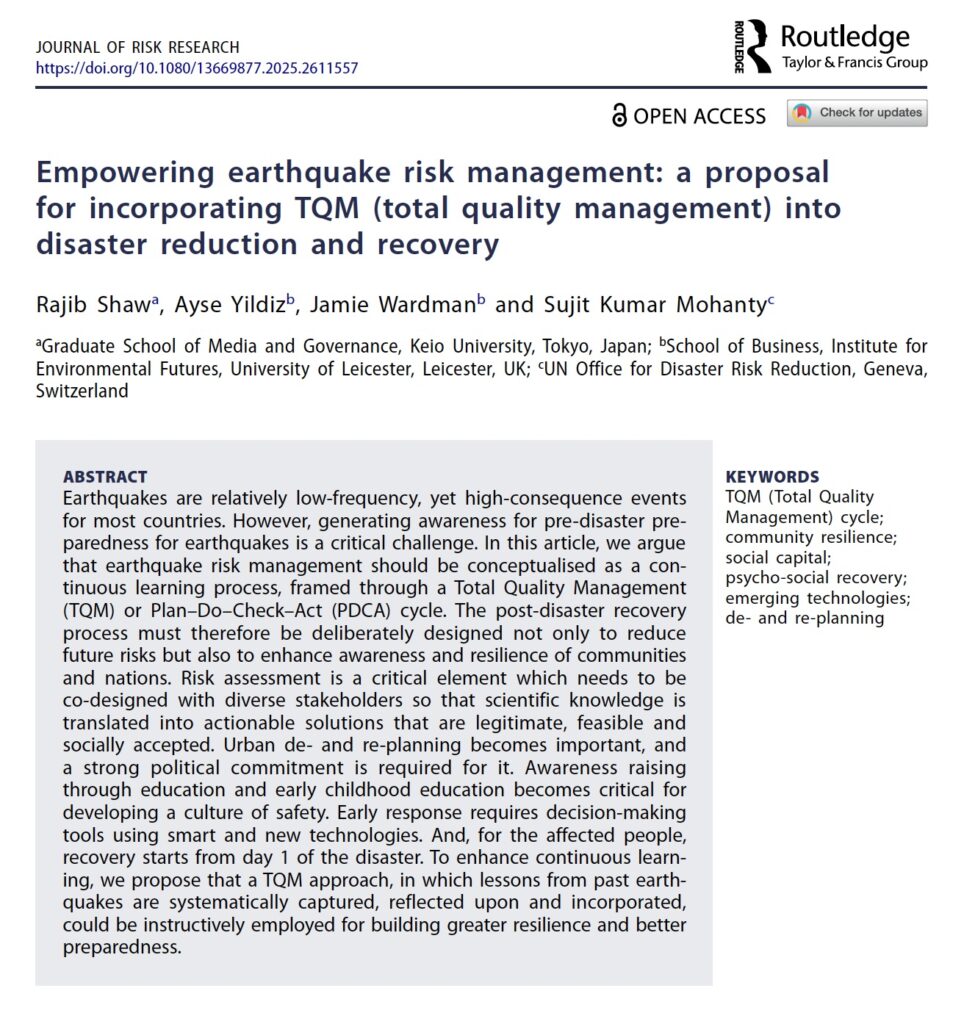 New paper: “Empowering earthquake risk management: a proposal for incorporating TQM (total quality management) into disaster reduction and recovery”