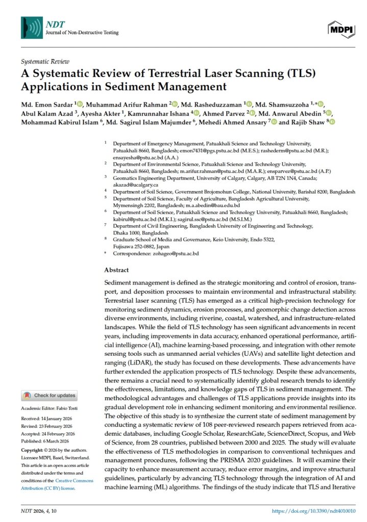 New Paper: “A Systematic Review of Terrestrial Laser Scanning (TLS) Applications in Sediment Management”